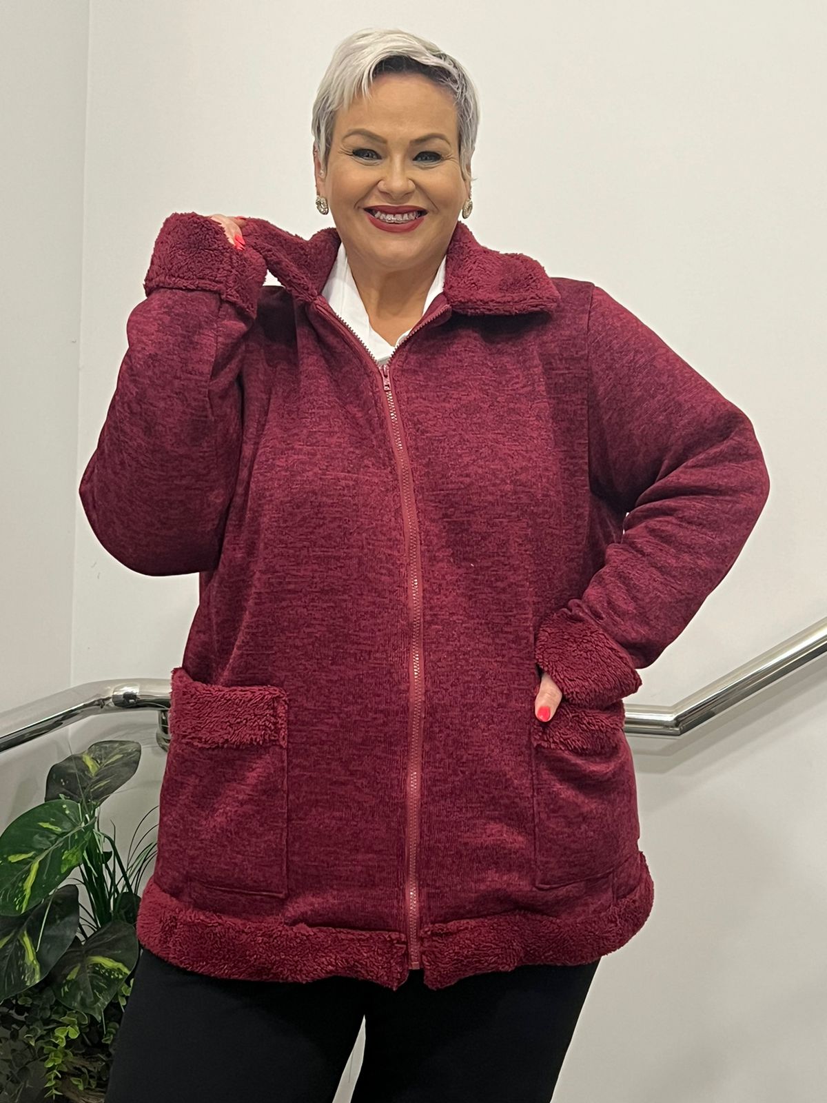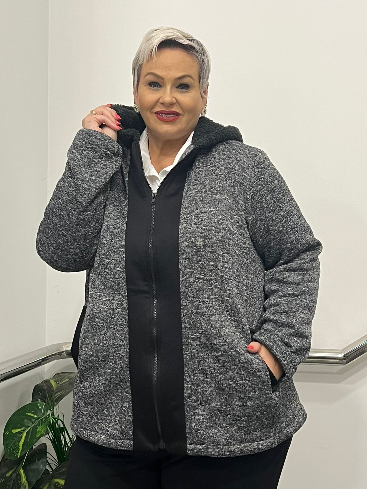 JAQUETA DE MALHA DUBLADA COM CAPUZ