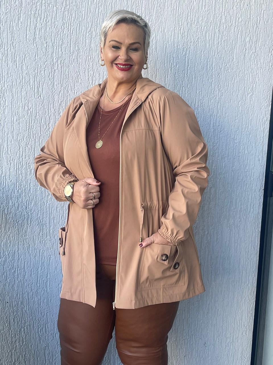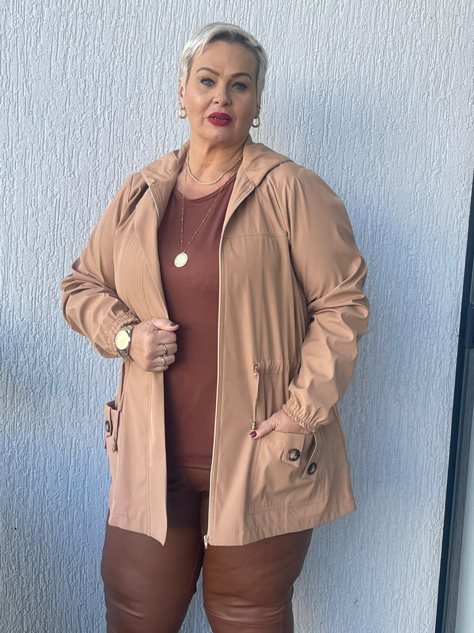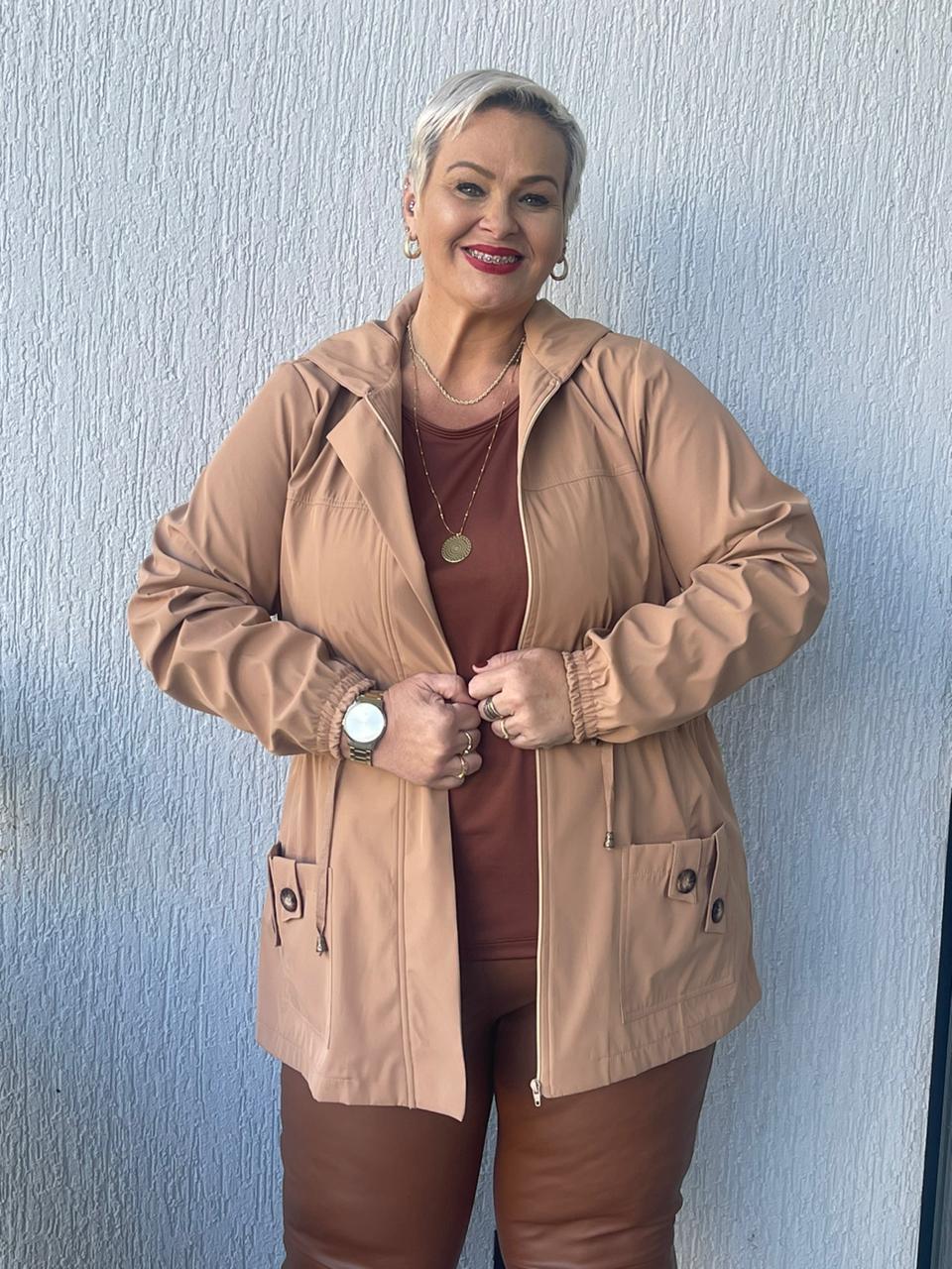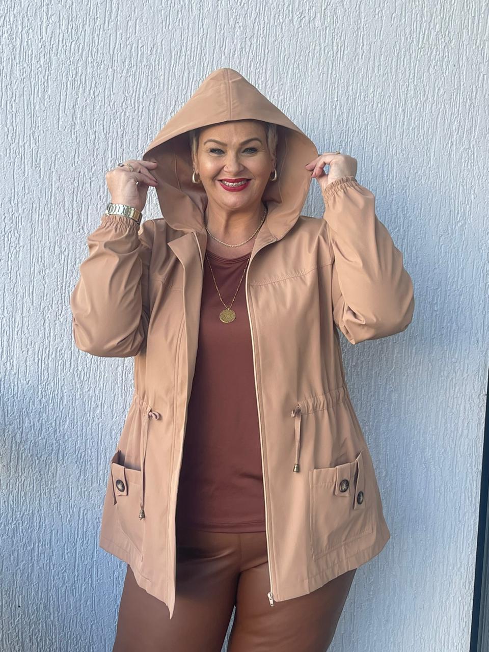 Parka corta vento com capuz FIXO, em nylon estruturado. SEM FORRO.